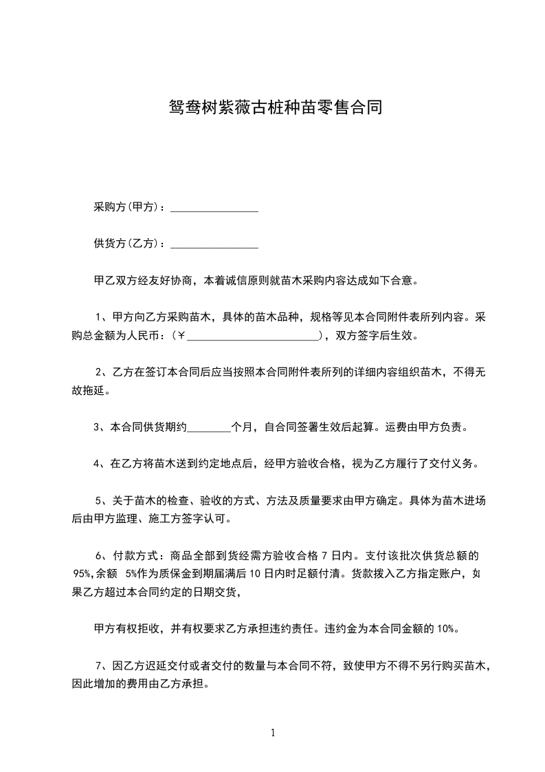 紫薇树桩苗木零售合同