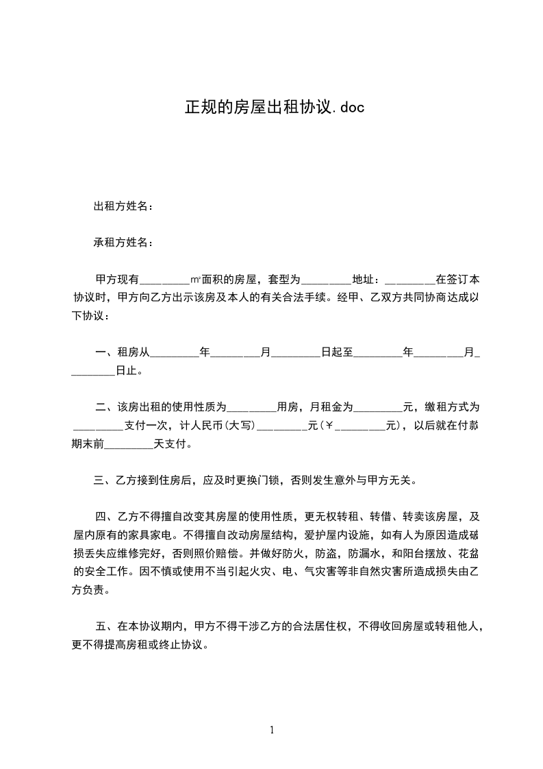 五、在本协议期内,甲方不得干涉乙方的合法居住权,不得收回房屋或转租他人,更不得提高房租或终止协议。