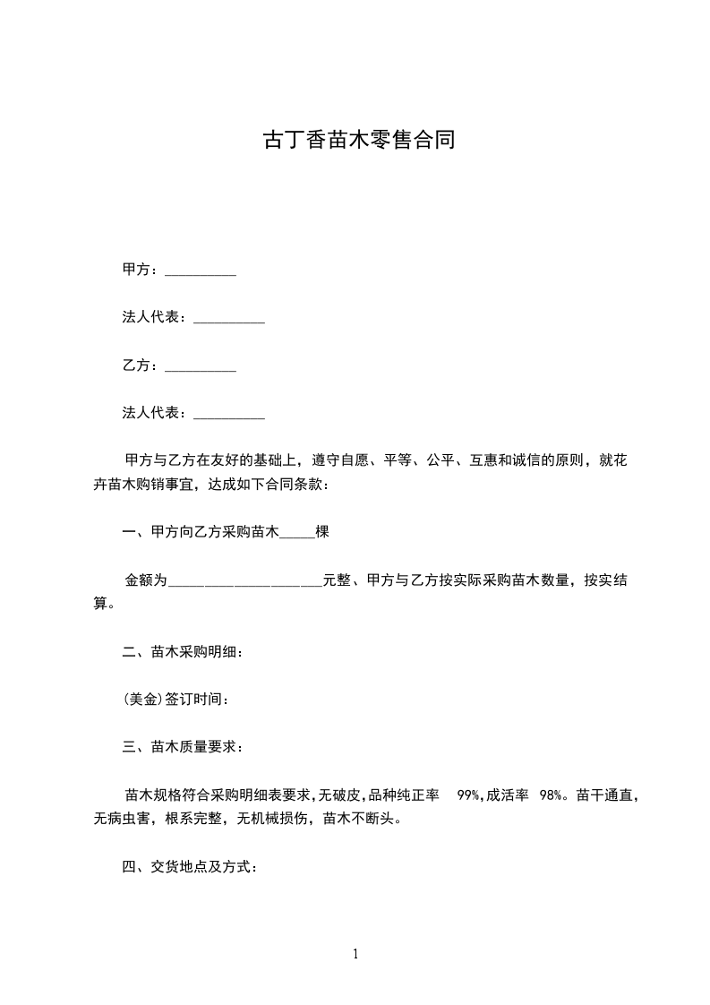 一、甲方向乙方采购苗木_____棵