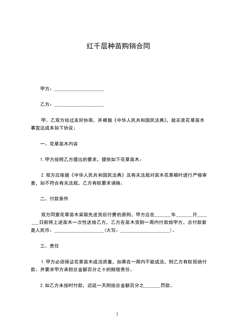 1.购销苗木品种、数量、价格、提货时间