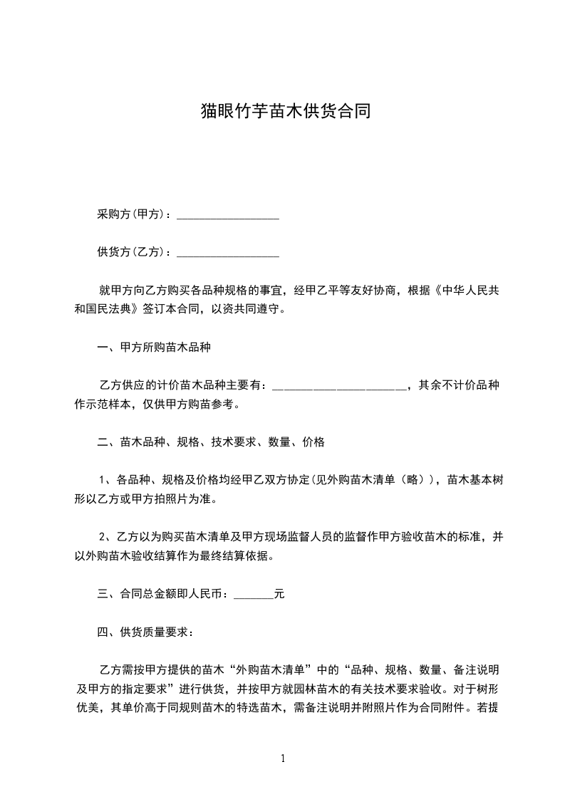 (4)乙方必须在___天内完成全部操作,即从合同签订生效日至所有苗木供应完毕为期___天。