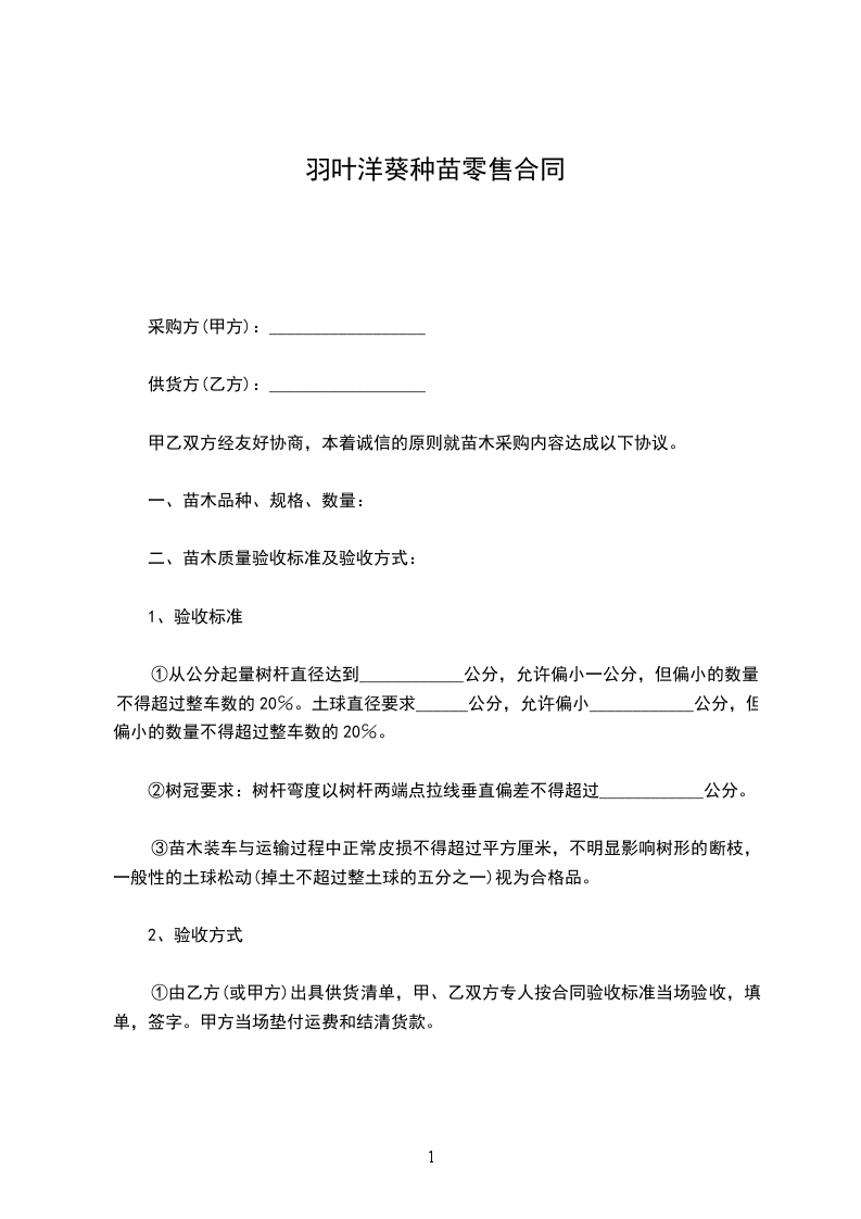 羽叶洋葵种苗零售合同
