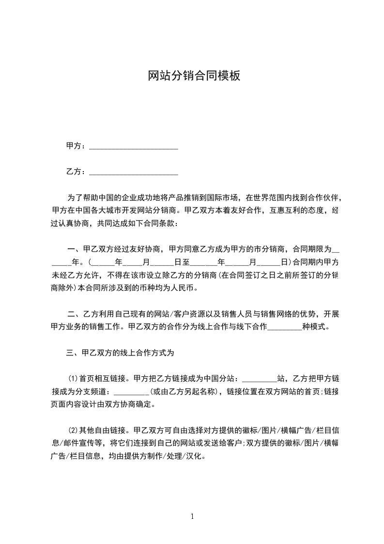 为了帮助中国的企业成功地将产品推销到国际市场,在世界范围内找到合作伙伴,甲方在中国各大城市开发网站分销商。甲乙双方本着友好合作,互惠互利的态度,经过认真协商,共同达成如下合同条款: