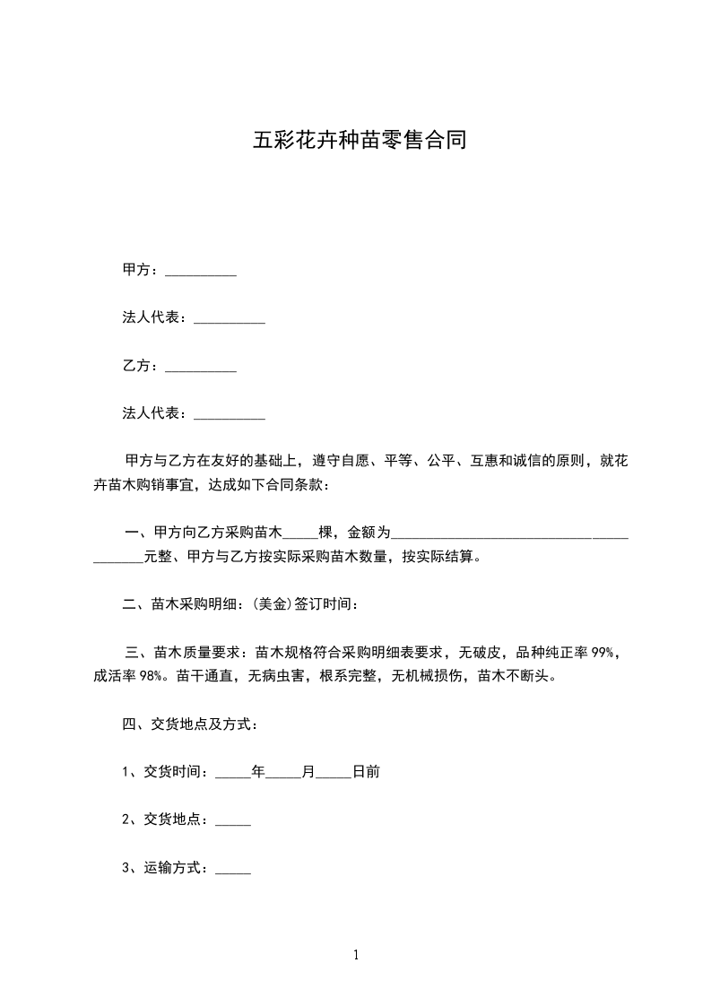 一、甲方向乙方采购苗木_____棵,金额为________________________________________元整、甲方与乙方按实际采购苗木数量,按实际结算。