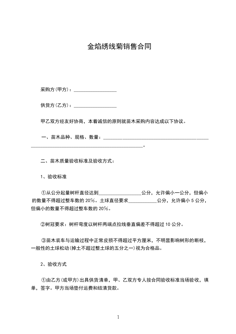 金焰绣线菊种苗零售合同