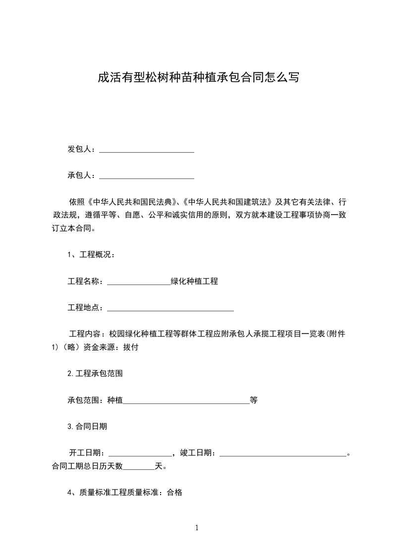 成活有型松树种苗零售合同