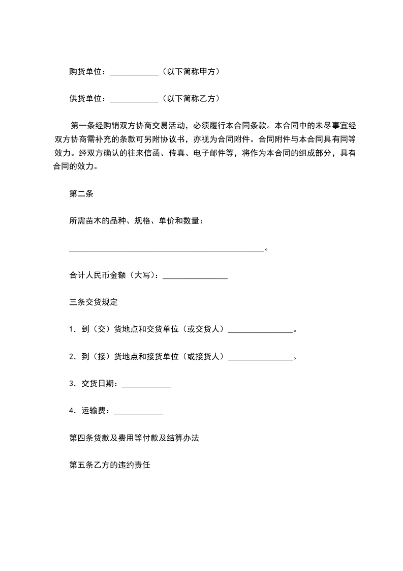 1.乙方交货数量少于合同的规定而甲方仍然需要的,以及供方逾期交货而甲方仍需要的,应照数补交。因逾期交货,甲方不再需要的,由乙方自行处理,并向甲方偿付该部分货款总值___%(1%~20%)的违约金。