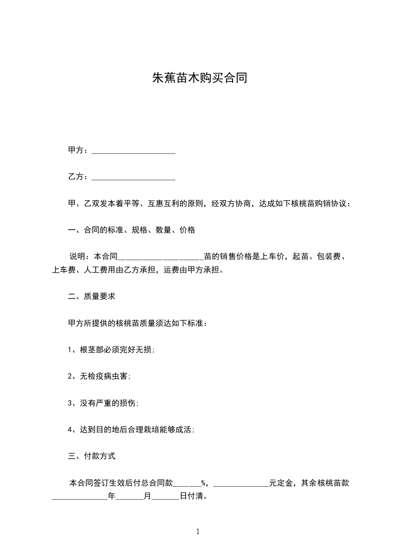 1、协议签字生效后,乙方付给甲方30%的苗木预定金,余额待提苗时一次性付清。如中途乙方所需数量变更应与甲方协商更改。如乙方不能按协议提苗,定金不予退还。