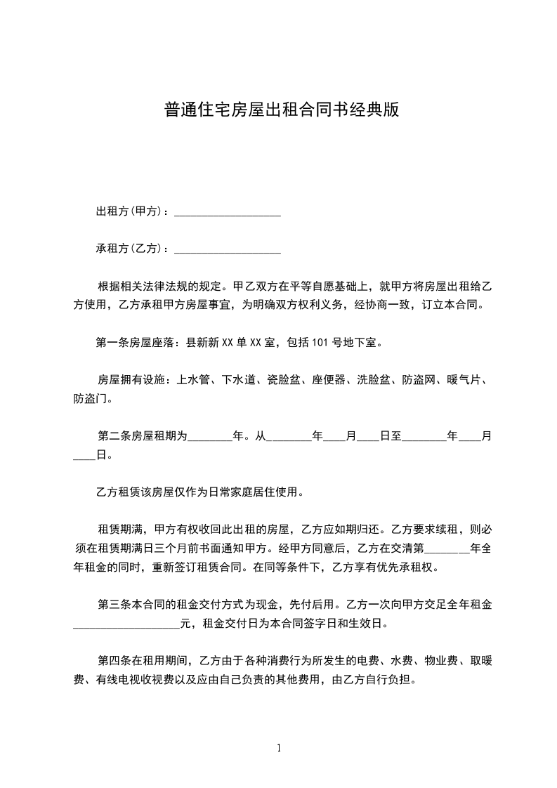 第三条本合同的租金交付方式为现金,先付后用。乙方一次向甲方交足全年租金___________________元,租金交付日为本合同签字日和生效日。