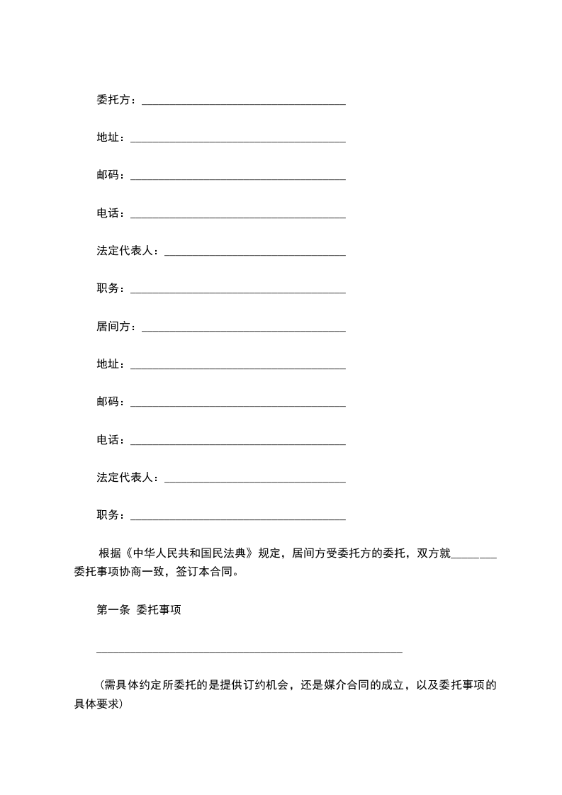 根据《中华人民共和国民法典》规定,居间方受委托方的委托,双方就________委托事项协商一致,签订本合同。