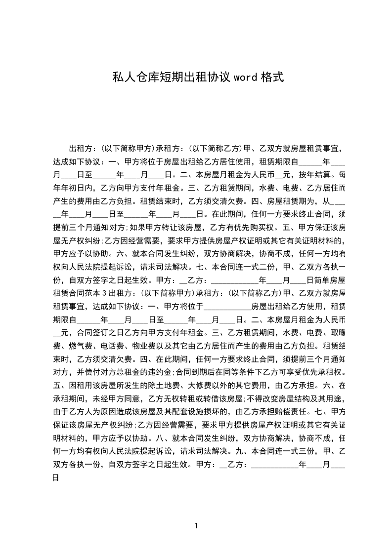 承租方(简称乙方):________________身份证号码:_____________________________________