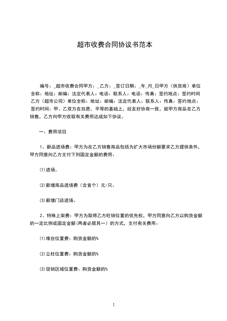 甲、乙双方在自愿、平等的基础上,经友好协商一致,就甲方商品在乙方销售,乙方向甲方收取有关费用达成如下协议。