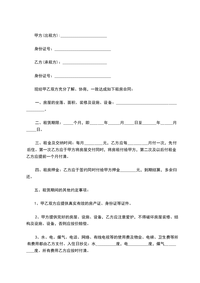 现经甲乙双方充分了解、协商,一致达成如下租房合同: