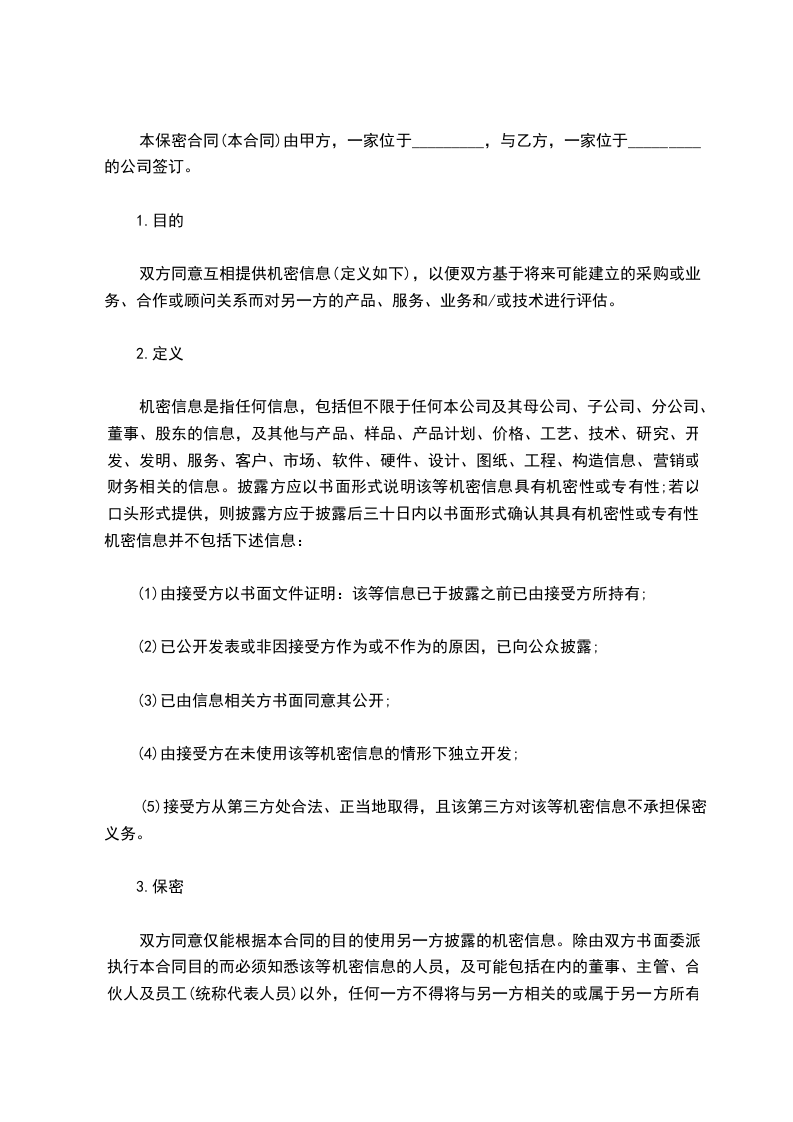 本保密合同(本合同)由甲方,一家位于_________,与乙方,一家位于_________的公司签订。