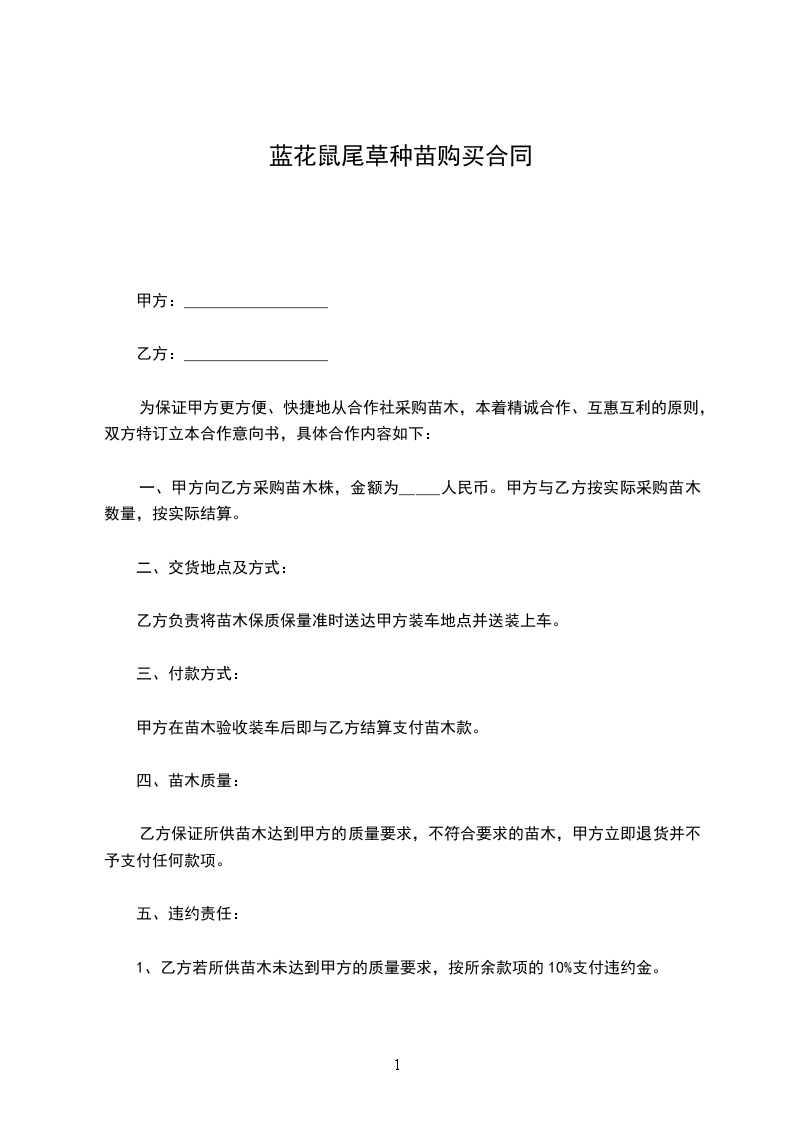 购苗方:__________________(以下简称甲方)