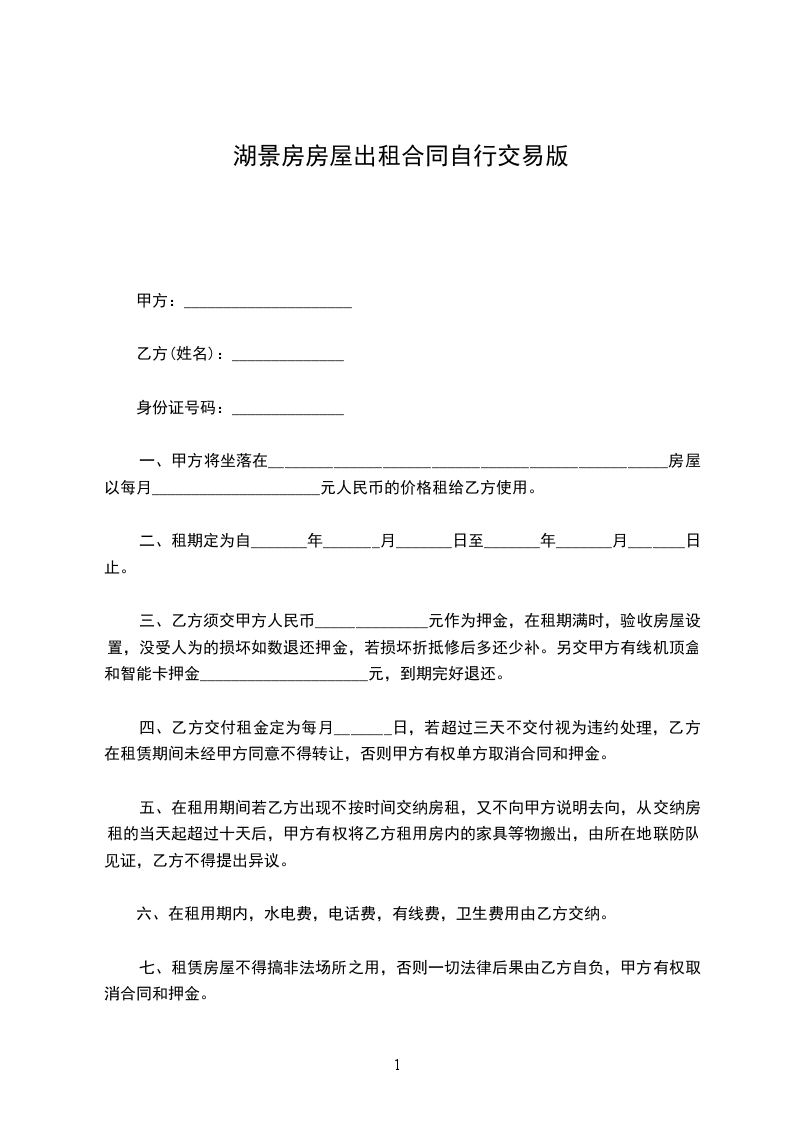 七、租赁房屋不得搞非法场所之用,否则一切法律后果由乙方自负,甲方有权取消合同和押金。