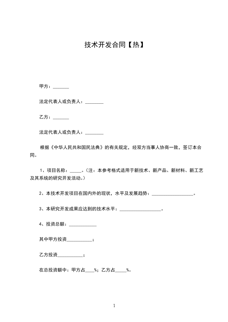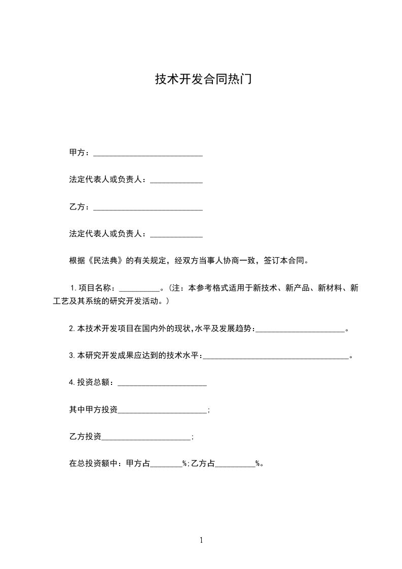 1.项目名称:__________。(注:本参考格式适用于新技术、新产品、新材料、新工艺及其系统的研究开发活动。)