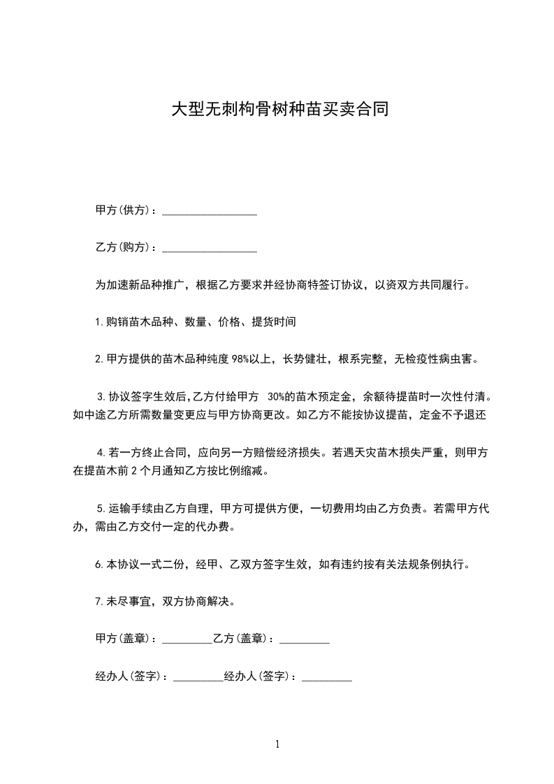 购苗方:________________(以下简称甲方)
