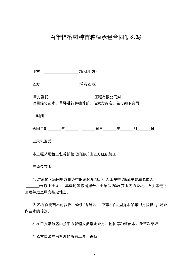 一、甲方向乙方采购苗木,具体的苗木品种为________________,规格为________________厘米,数量为________株,树龄为________年。