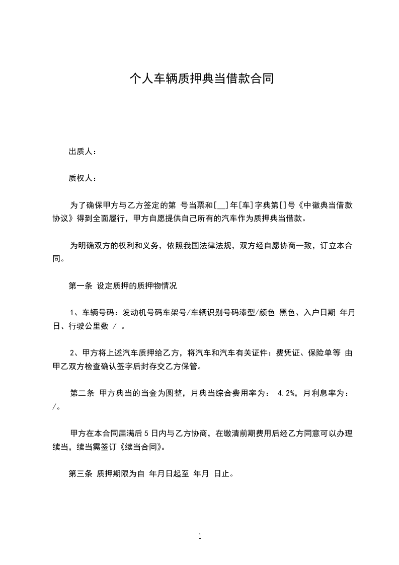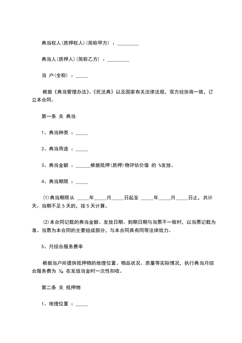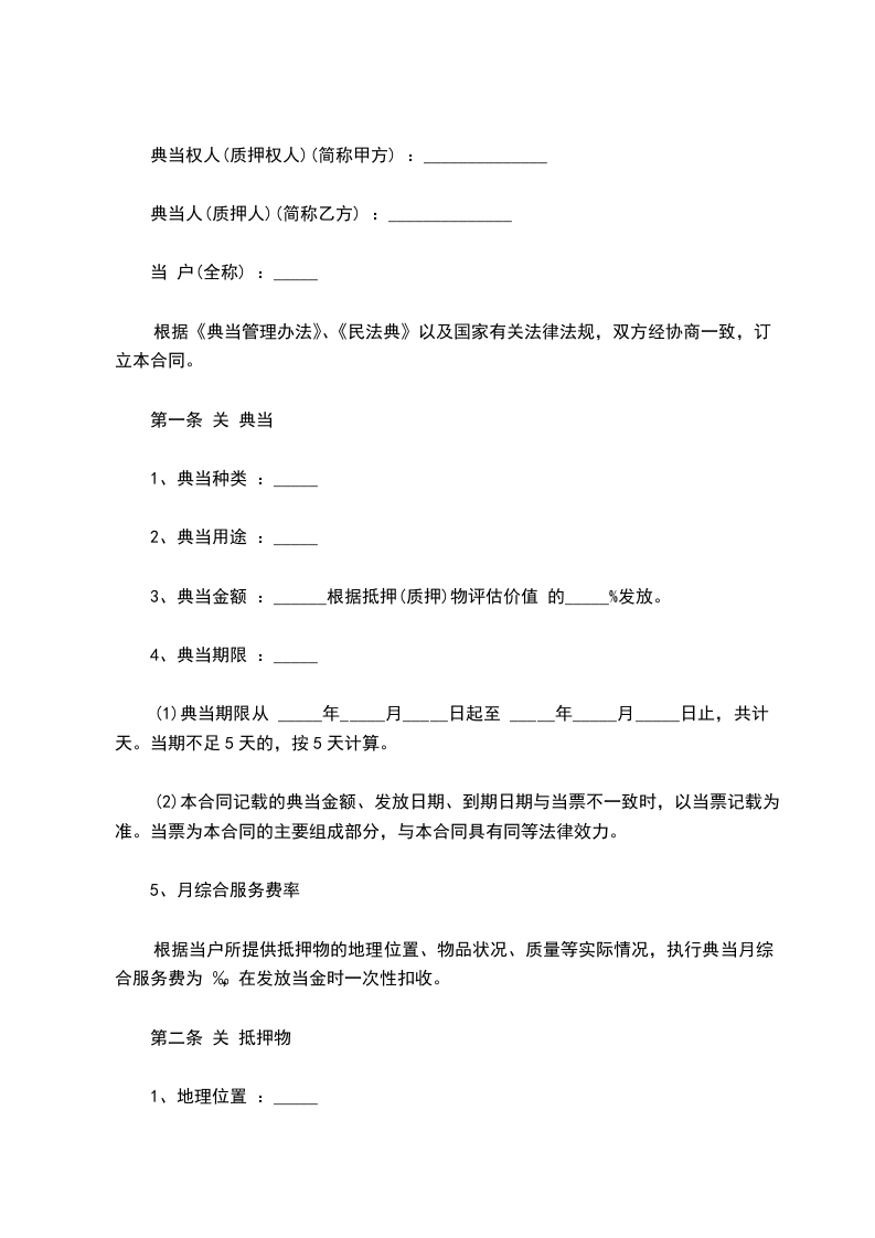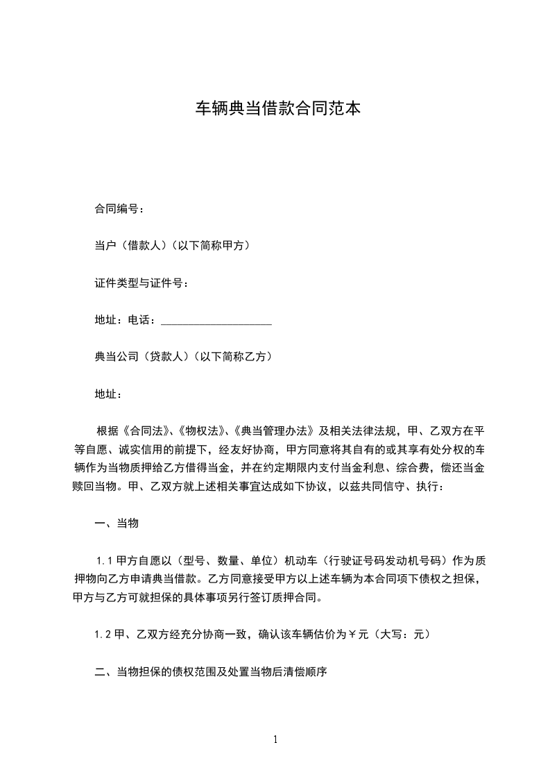 根据《民法典》、《典当管理办法》及相关法律法规,甲、乙双方在平等自愿、诚实信用的前提下,经友好协商,甲方同意将其自有的或其享有处分权的车辆作为当物质押给乙方借得当金,并在约定期限内支付当金利息、综合费,偿还当金,赎回当物。甲、乙双方就上述相关事宜达成如下协议,以兹共同信守、执行: