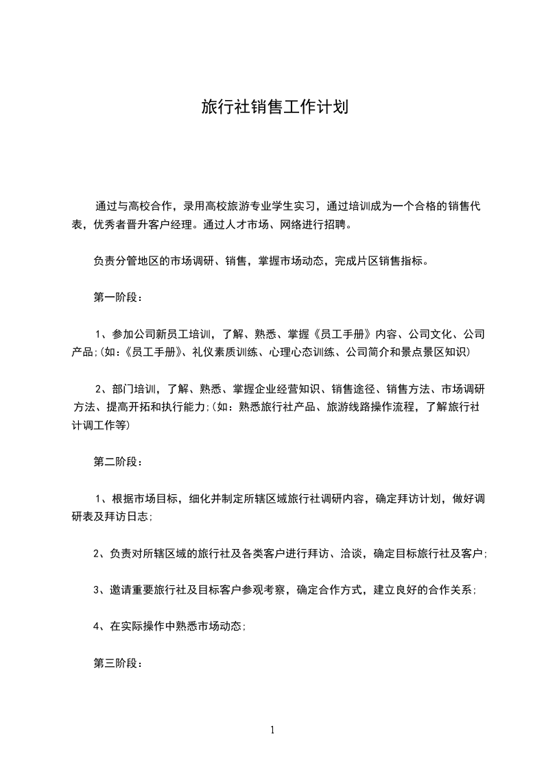 2、负责对所辖区域的旅行社及各类客户进行拜访、洽谈,确定目标旅行社及客户;