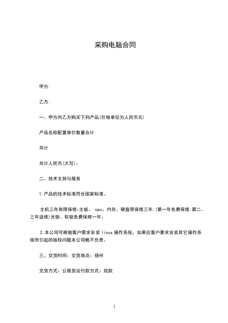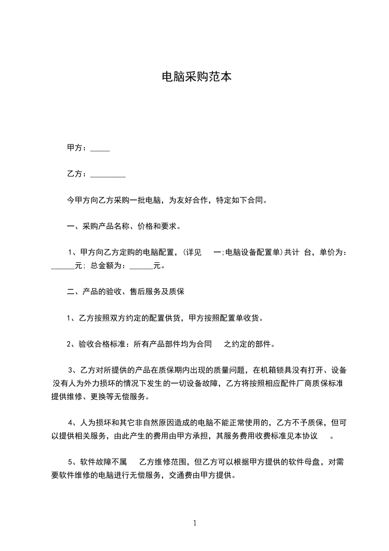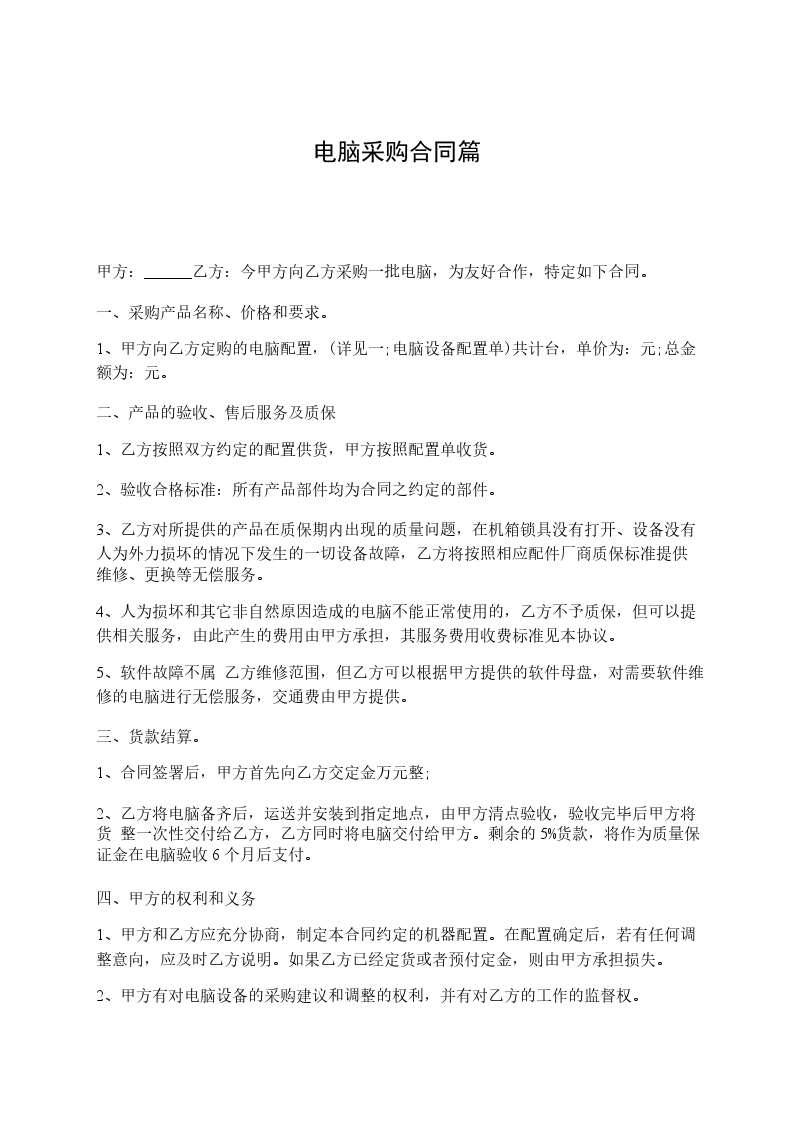 今甲方向乙方采购一批电脑,为友好合作,特定如下合同。