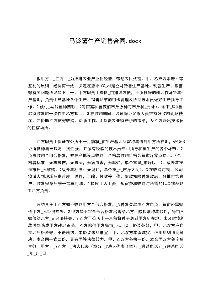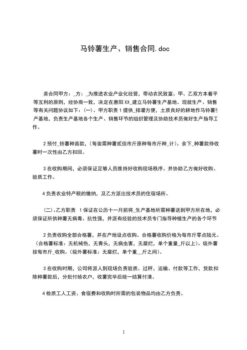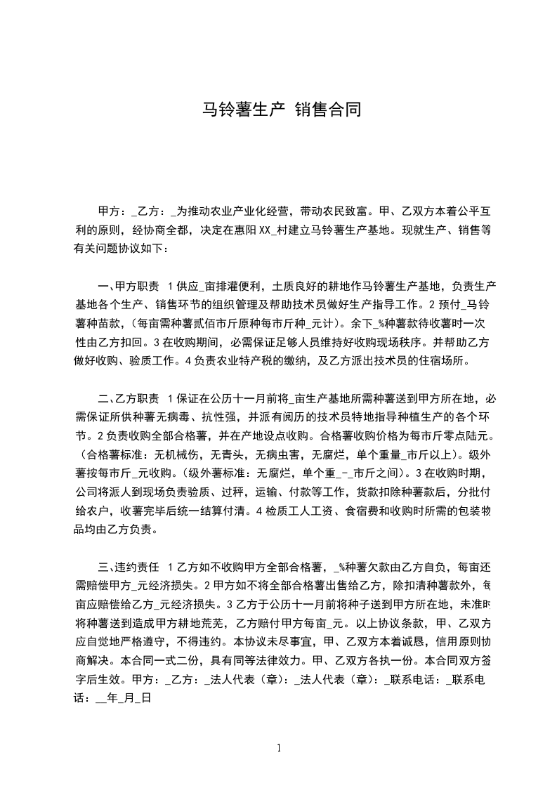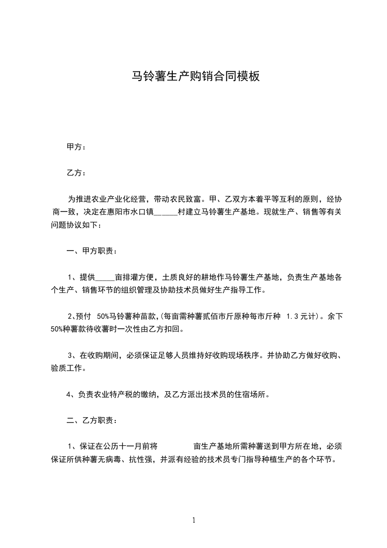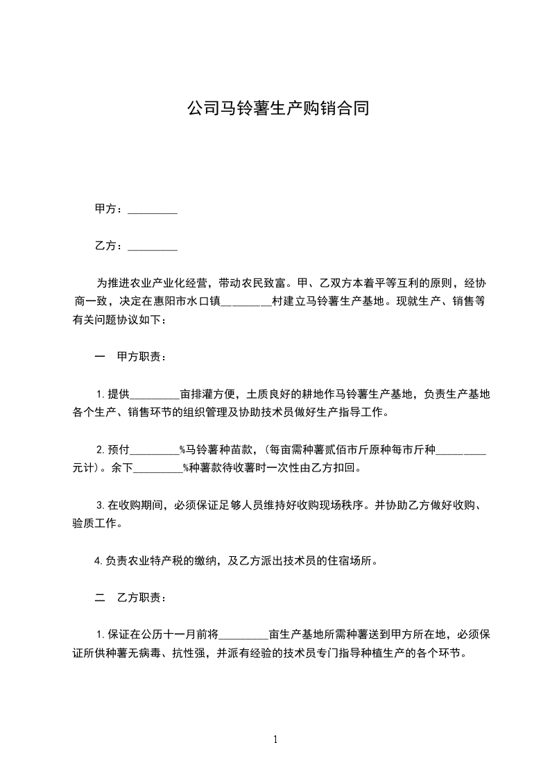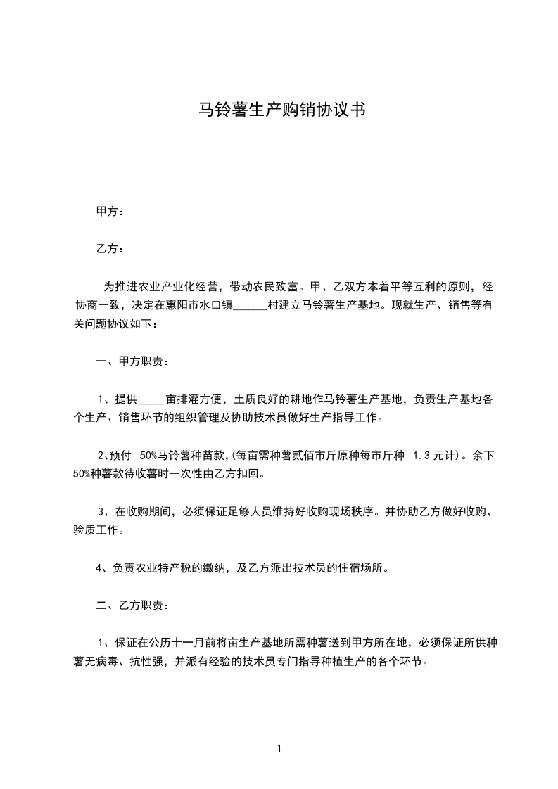 为推进农业产业化经营,带动农民致富。甲、乙双方本着平等互利的原则,经协商一致,决定在惠阳市水口镇______村建立马铃薯生产基地。现就生产、销售等有关问题协议如下: