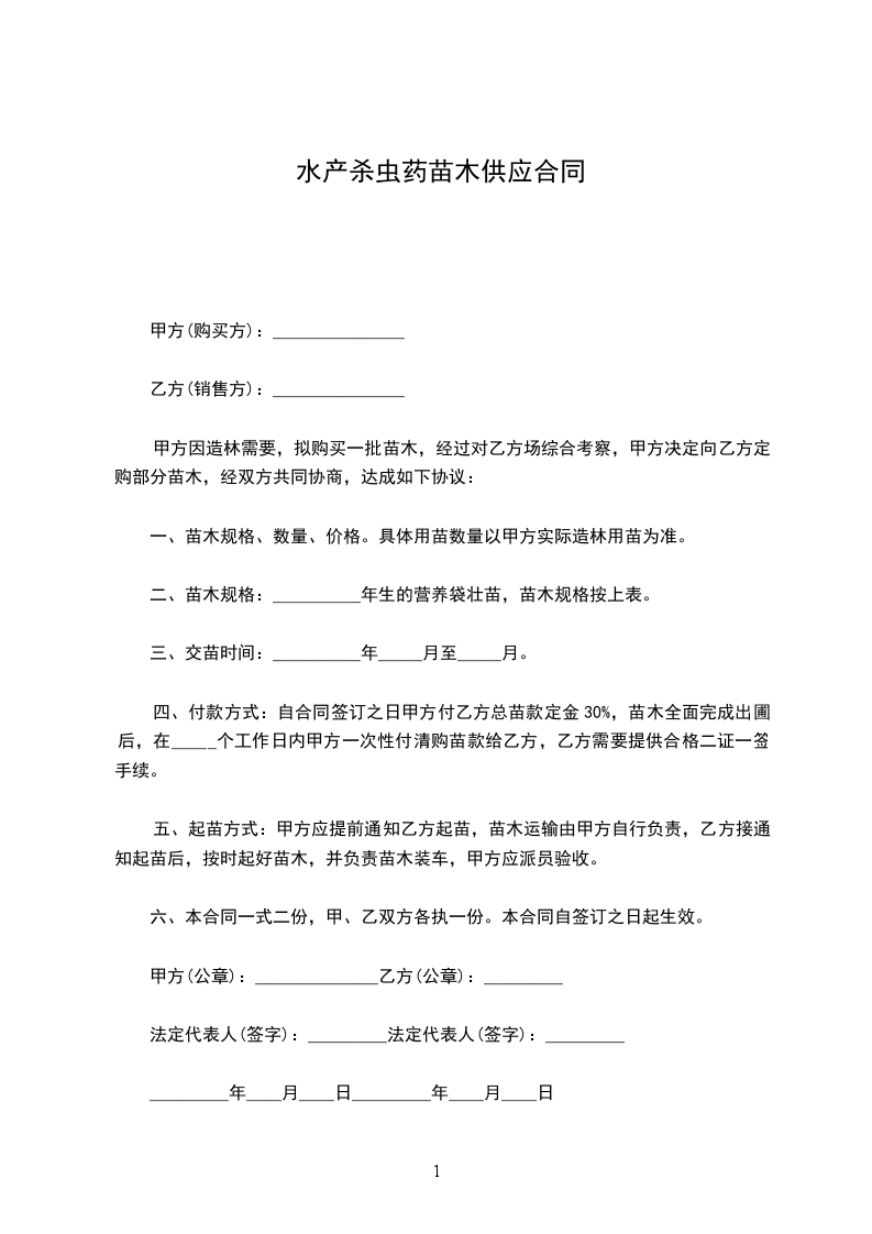 一、甲方向乙方采购苗木_______株,金额为人民币________.甲方与乙方按实际采购苗木数量,按实结算。