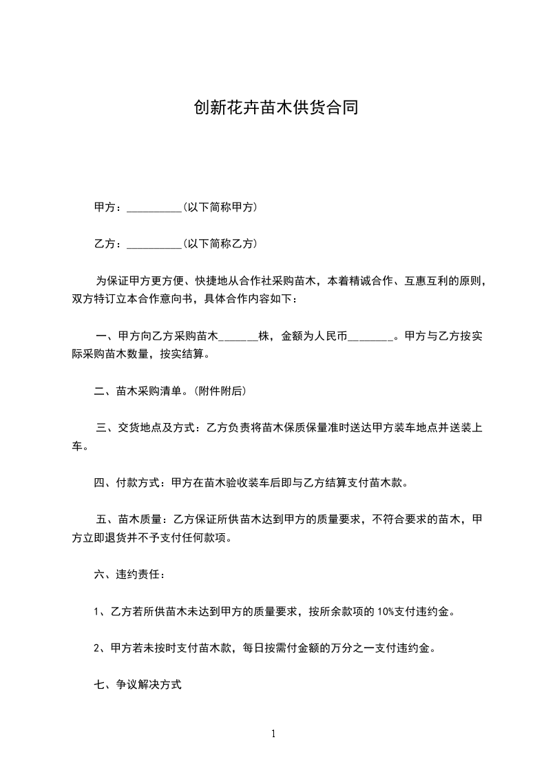 创新花卉苗木供货合同