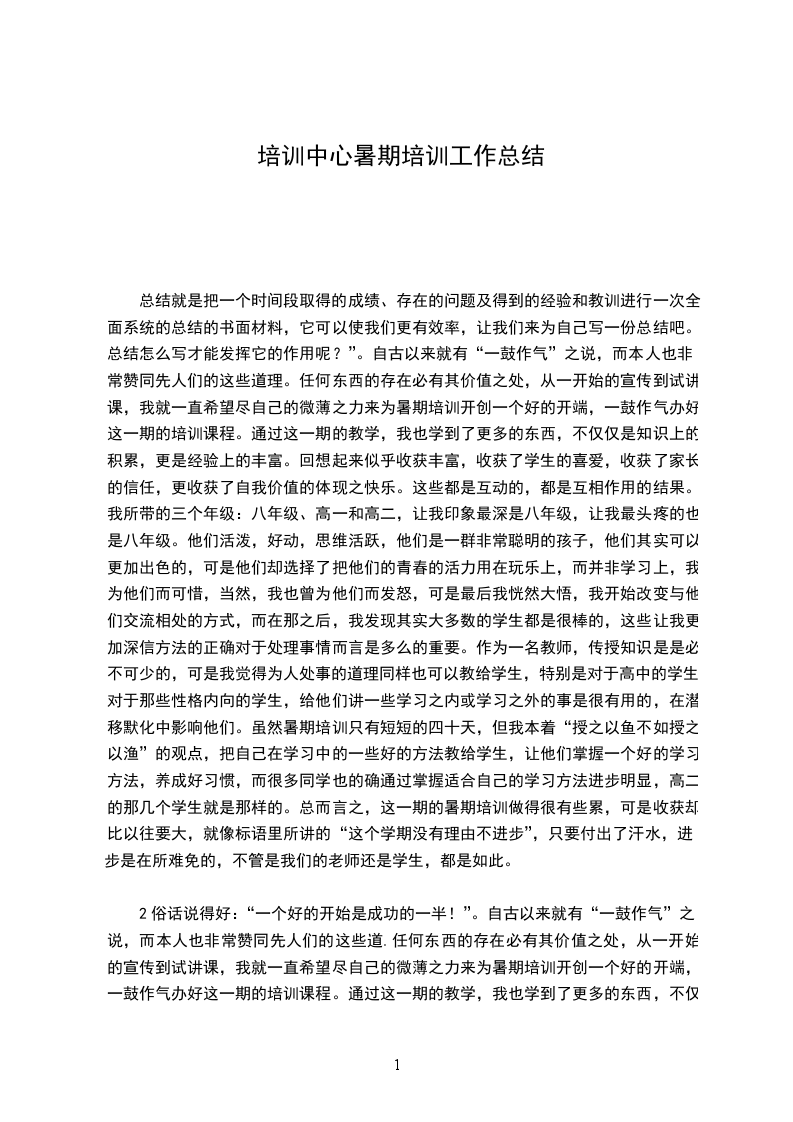 7、结业:参训学员写出书面总结材料800__字,打印一式二份,交书面总结材料后颁布发培训结业证书。