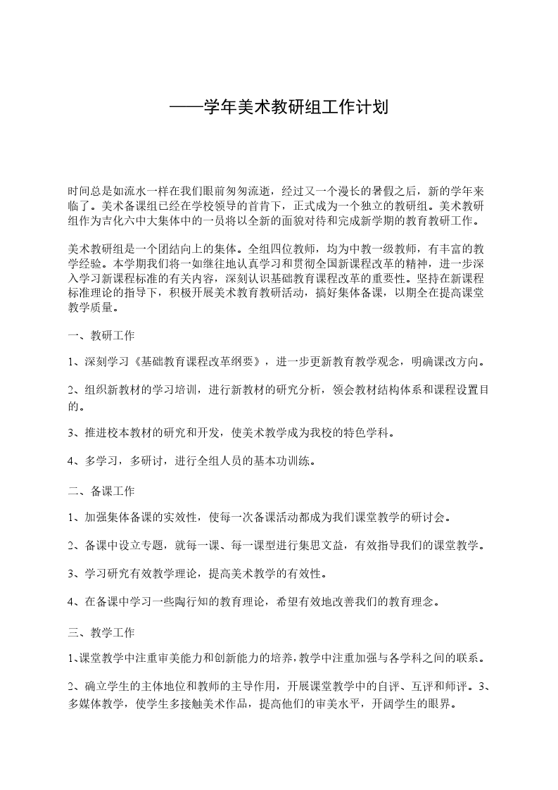 以上是美术教研组在教研、备课、教学工作中的几点计划设想。我们会充分有效地利用集体备课教研活动时间,希望的教学工作能有进一步的突破。