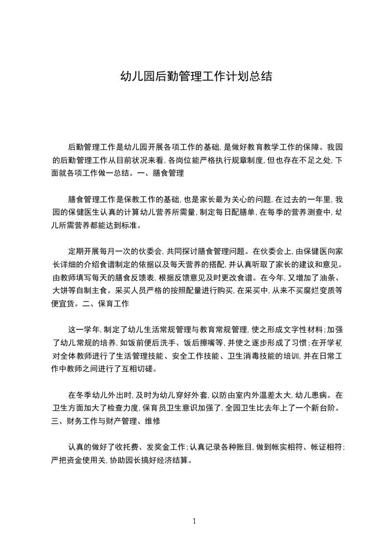 1、完善各项卫生保健制度,配合园长做好保育后勤管理工作。