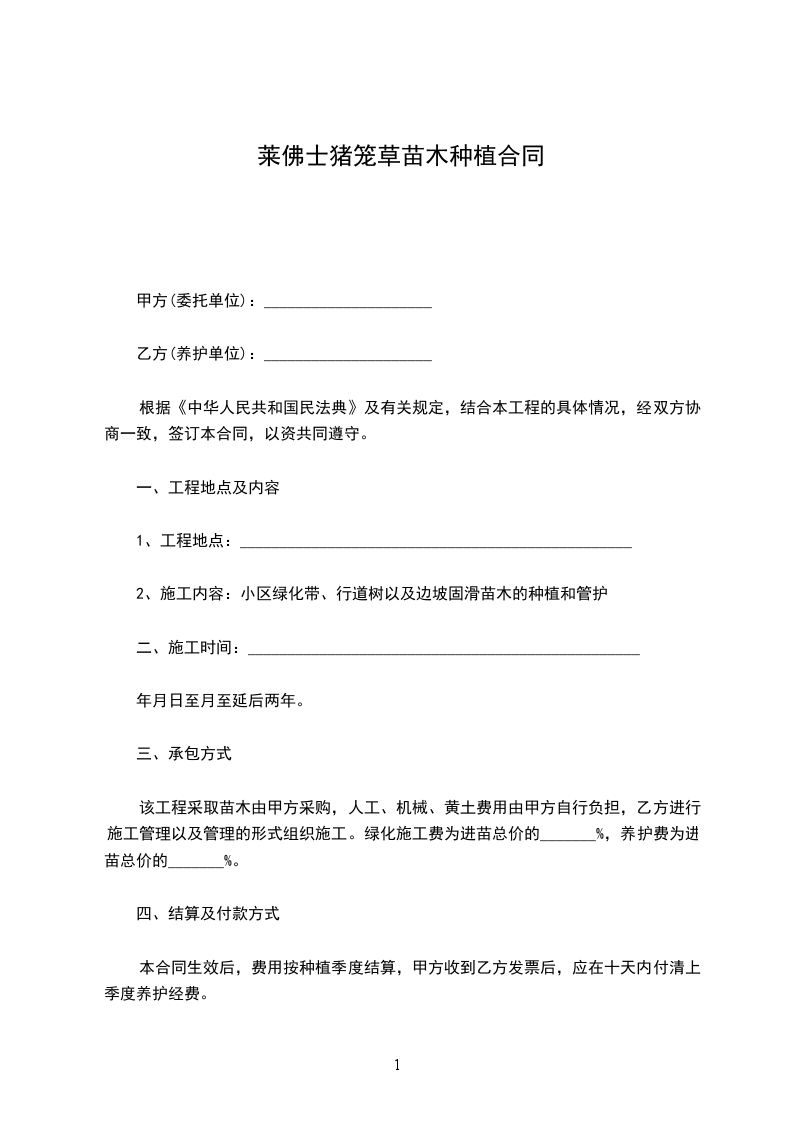 甲方向乙方采购苗木______株,金额为______人民币。甲方与乙方按实际采购苗木数量,按实结算。