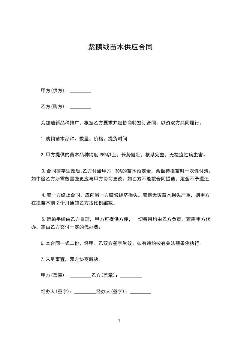 一、甲方向乙方采购苗木_______株,金额为人民币________。甲方与乙方按实际采购苗木数量,按实结算。
