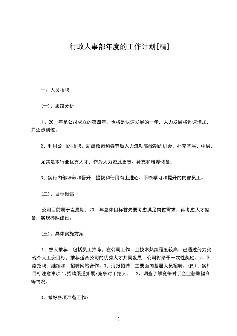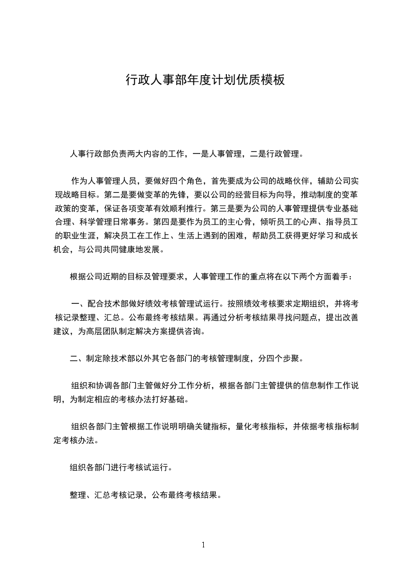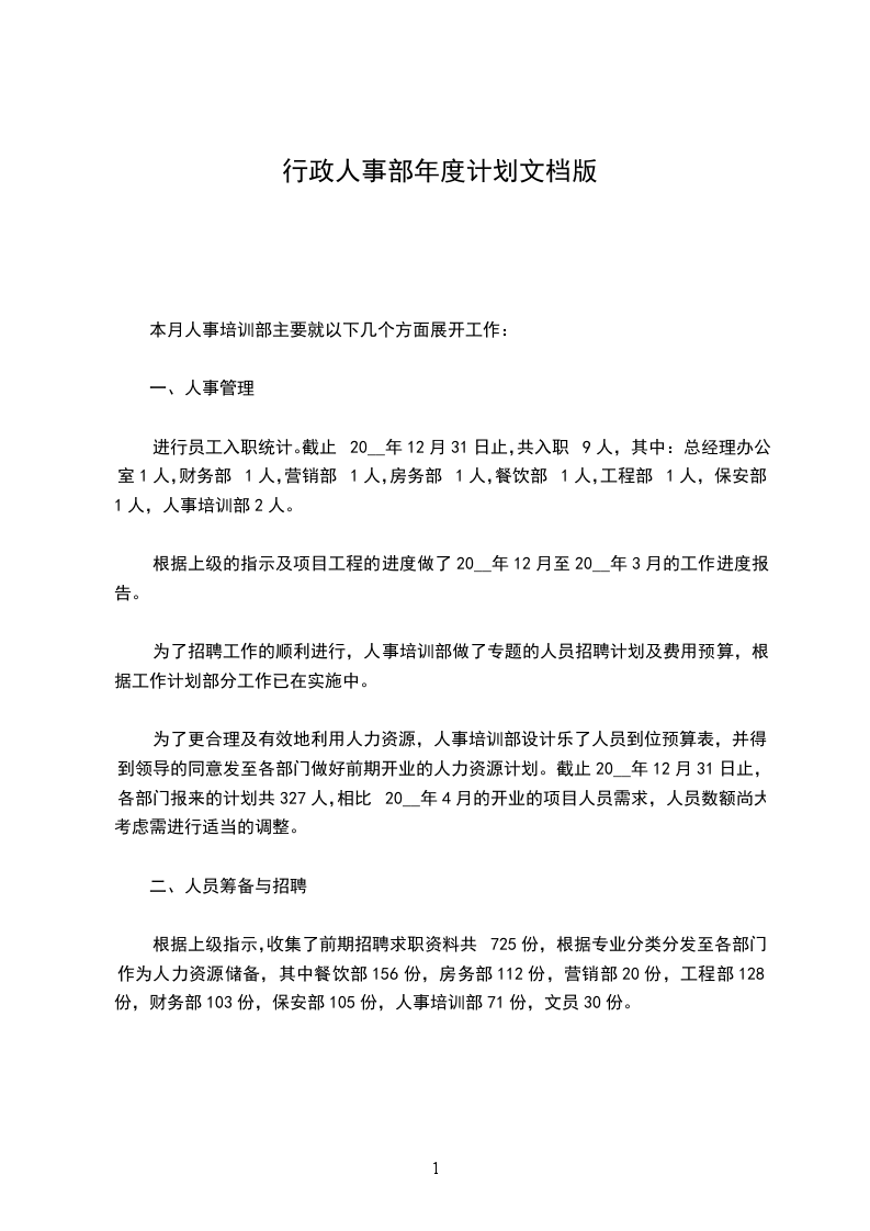 为加强公司人事行政部工作的计划性及量化时效性,人事行政部将结合公司整体发展规划及企业发展方向,参考公司__年相关能收集到的资料为基础,制订出人事行政部__年工作目标及计划。