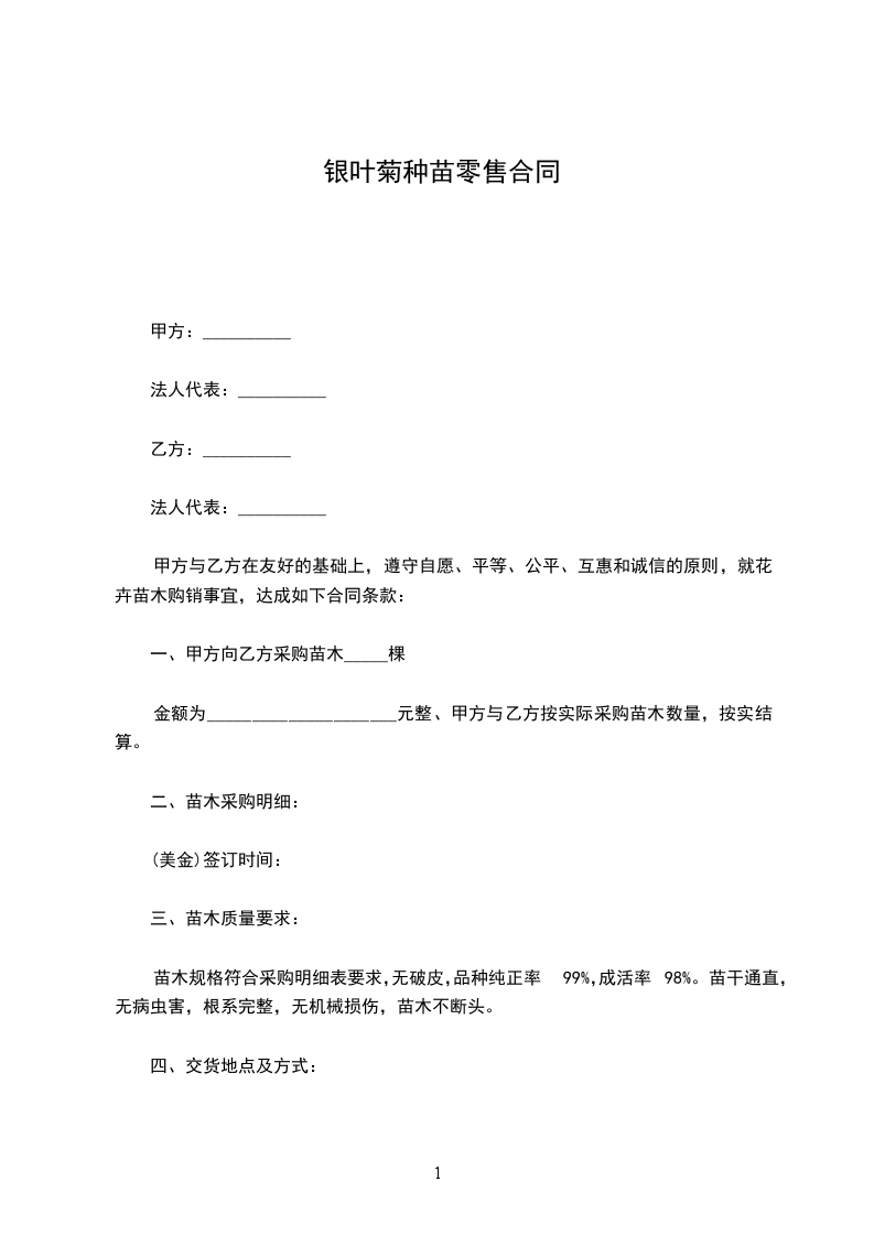 一、甲方向乙方采购苗木_____棵