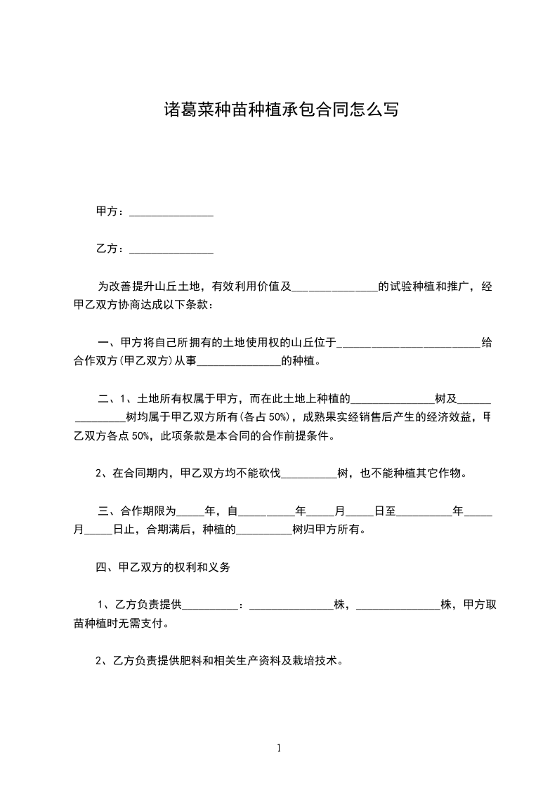甲方向乙方采购苗木,具体的苗木品种为_______________________,规格为________厘米,数量为________株,树龄为________年。