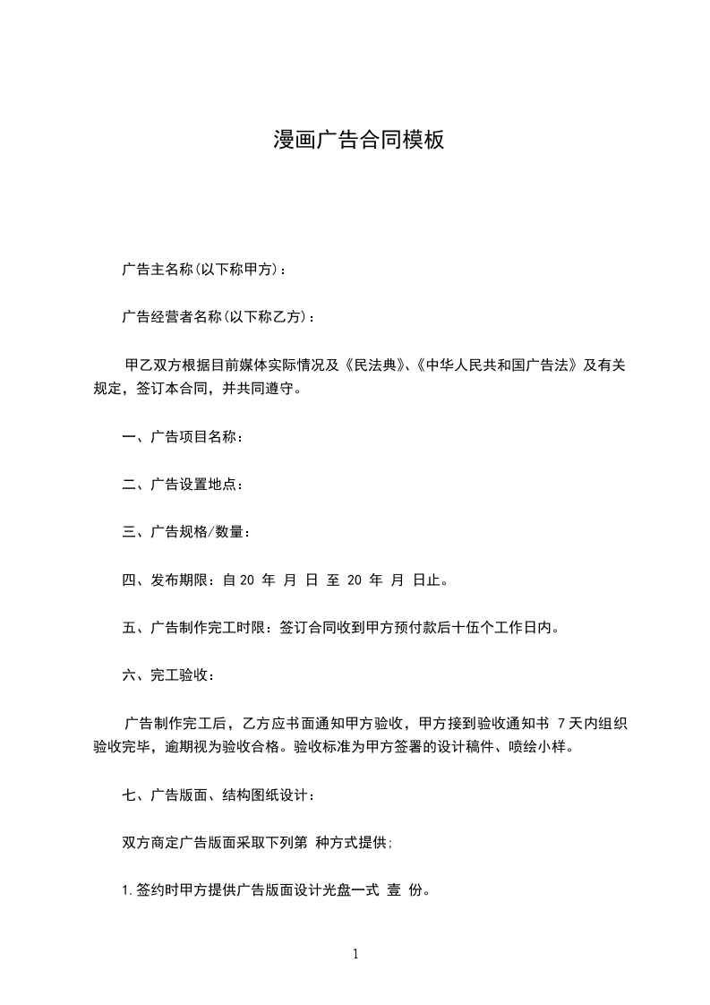 1.广告制作完工经验收不合格,广告发布期限按验收合格日期顺延。
