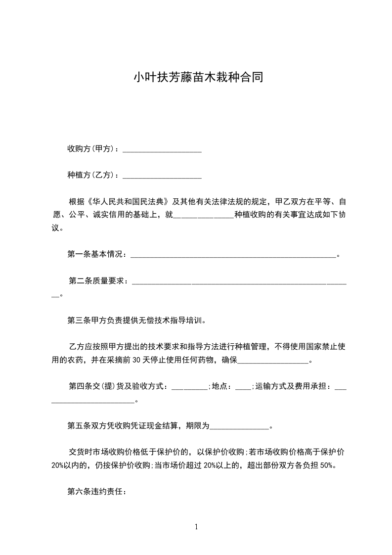 小叶扶芳藤苗木供货合同