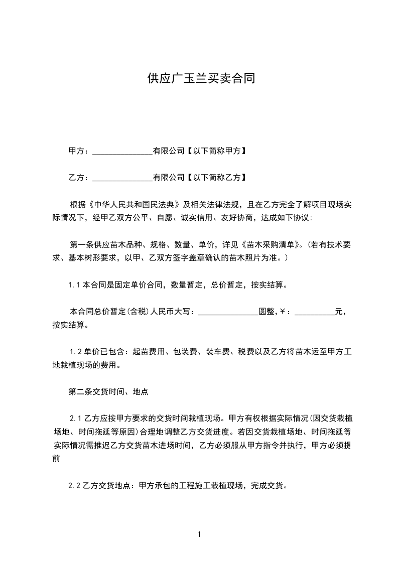 一、甲方向乙方采购苗木株,金额为人民币__________。甲方与乙方按实际采购苗木数量,按实结算。