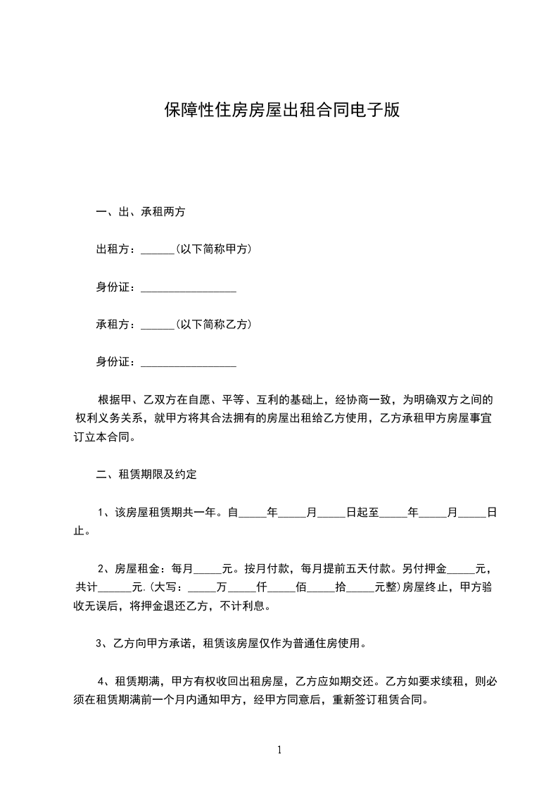 1、该房屋租赁期共一年。自_____年_____月_____日起至_____年_____月_____日止。