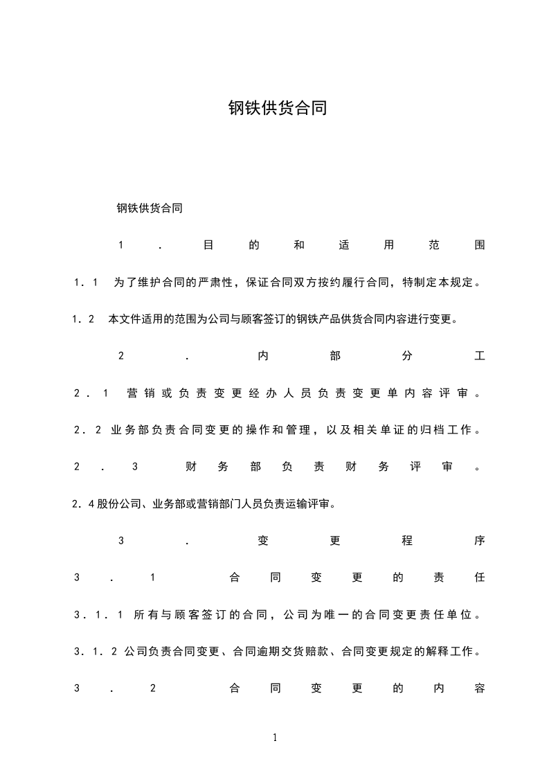 1.2 本文件适用的范围为公司与顾客签订的钢铁产品供货合同内容进行变更。