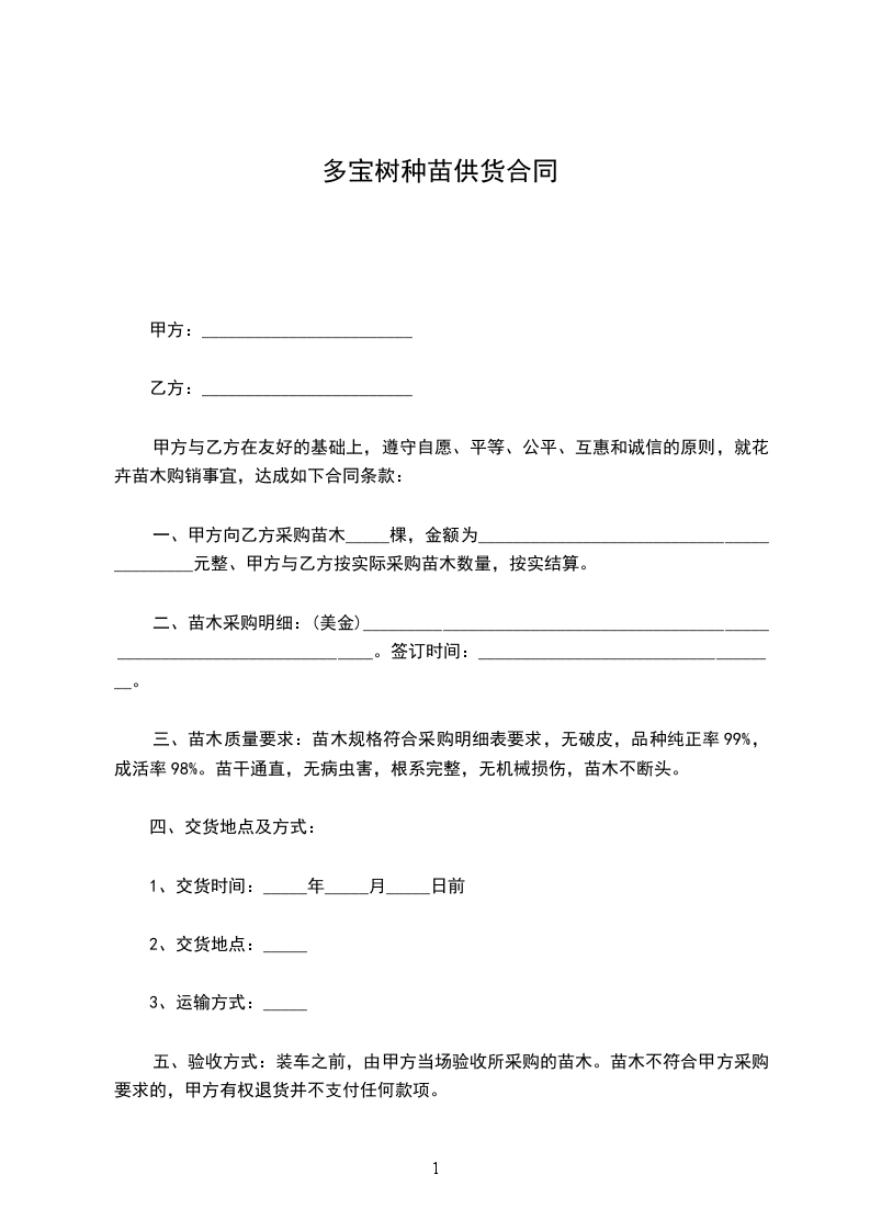 供苗方(乙方):__________________