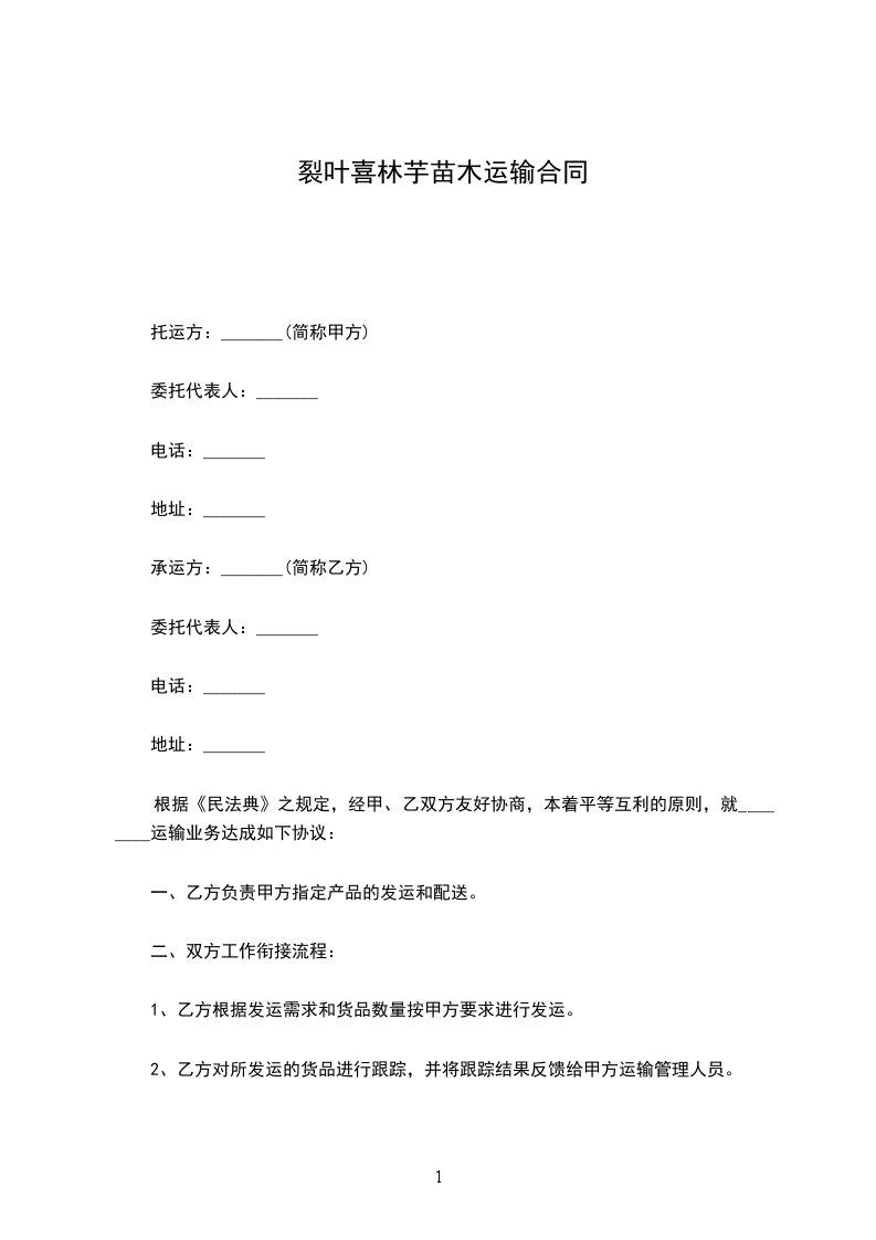 二、本合同的苗木价格为苗木价、即:苗木价格为乙方按照甲方的要求将符合本合同约定的苗木运到甲方指定的栽植地点的价格。苗木运费由___________________支付。