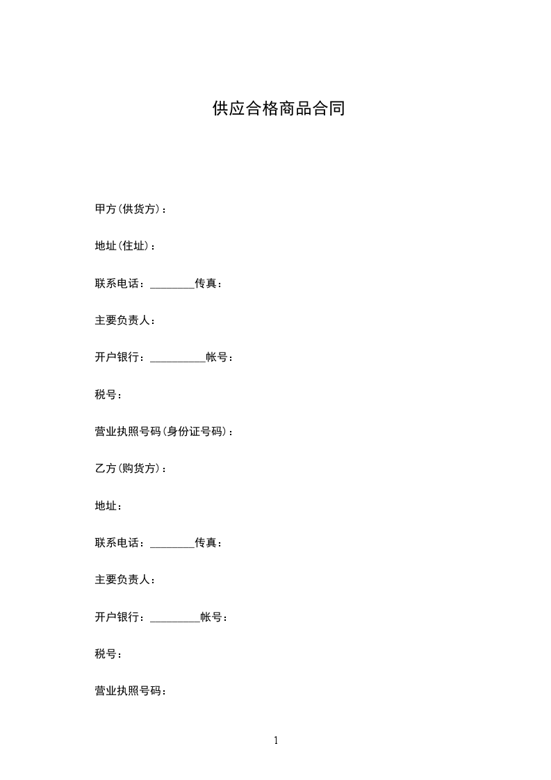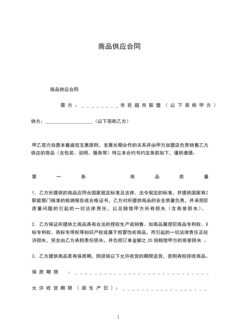 1.乙方所提供的商品应符合国家规定标准及法律、法令规定的标准,并提供国家有关职能部门核准的检测报告或合格证书,乙方对所提供商品的安全质量负责,并承担因质量问题的引起的一切法律责任,以及赔偿甲方所有损失(含商誉损失)。