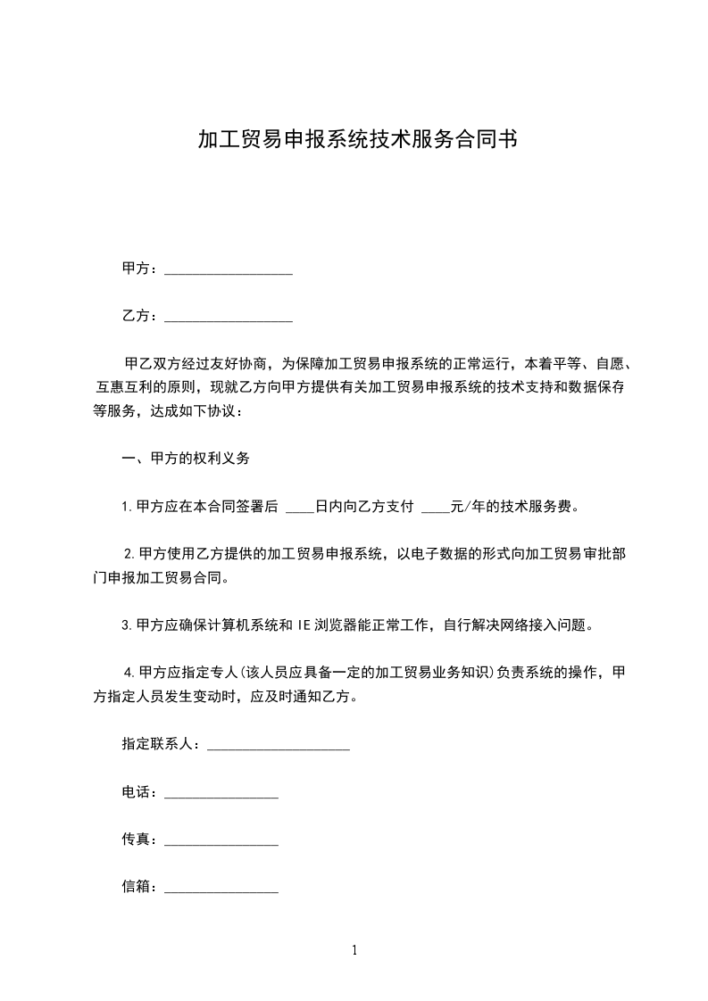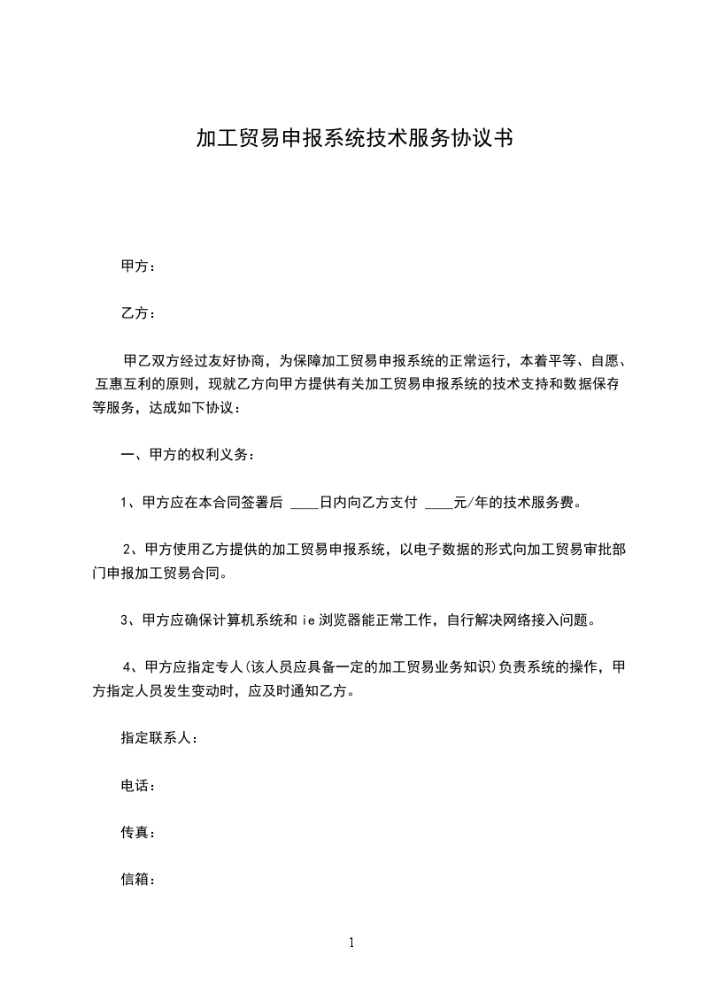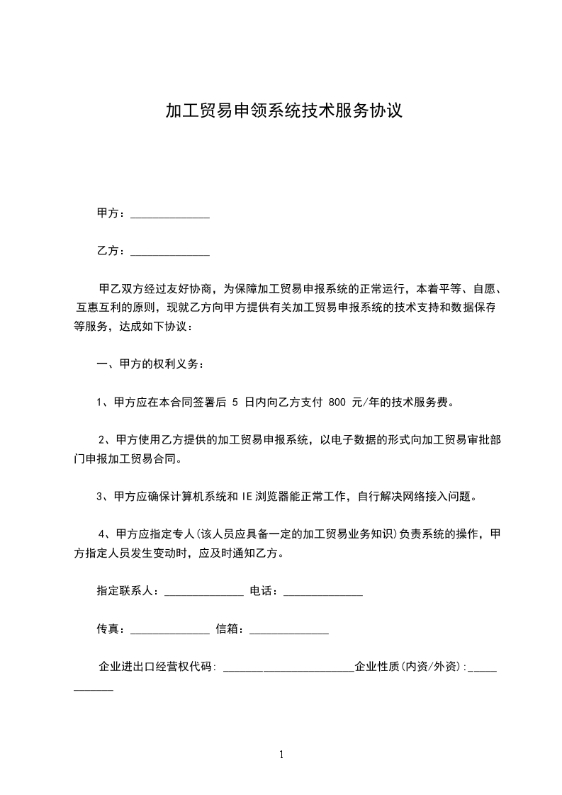 甲乙双方经过友好协商,为保障加工贸易申报系统的正常运行,本着平等、自愿、互惠互利的原则,现就乙方向甲方提供有关加工贸易申报系统的技术支持和数据保存等服务,达成如下协议: