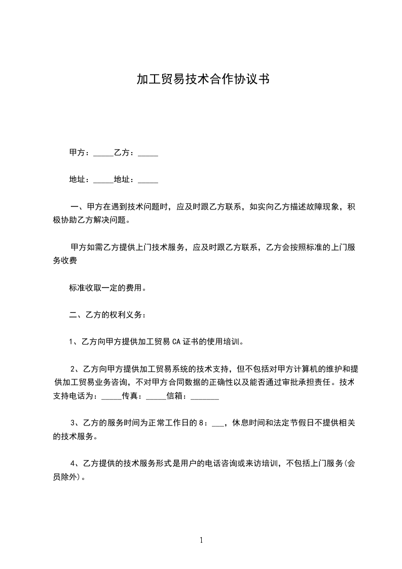 1、乙方向甲方提供加工贸易ca证书的使用培训。
