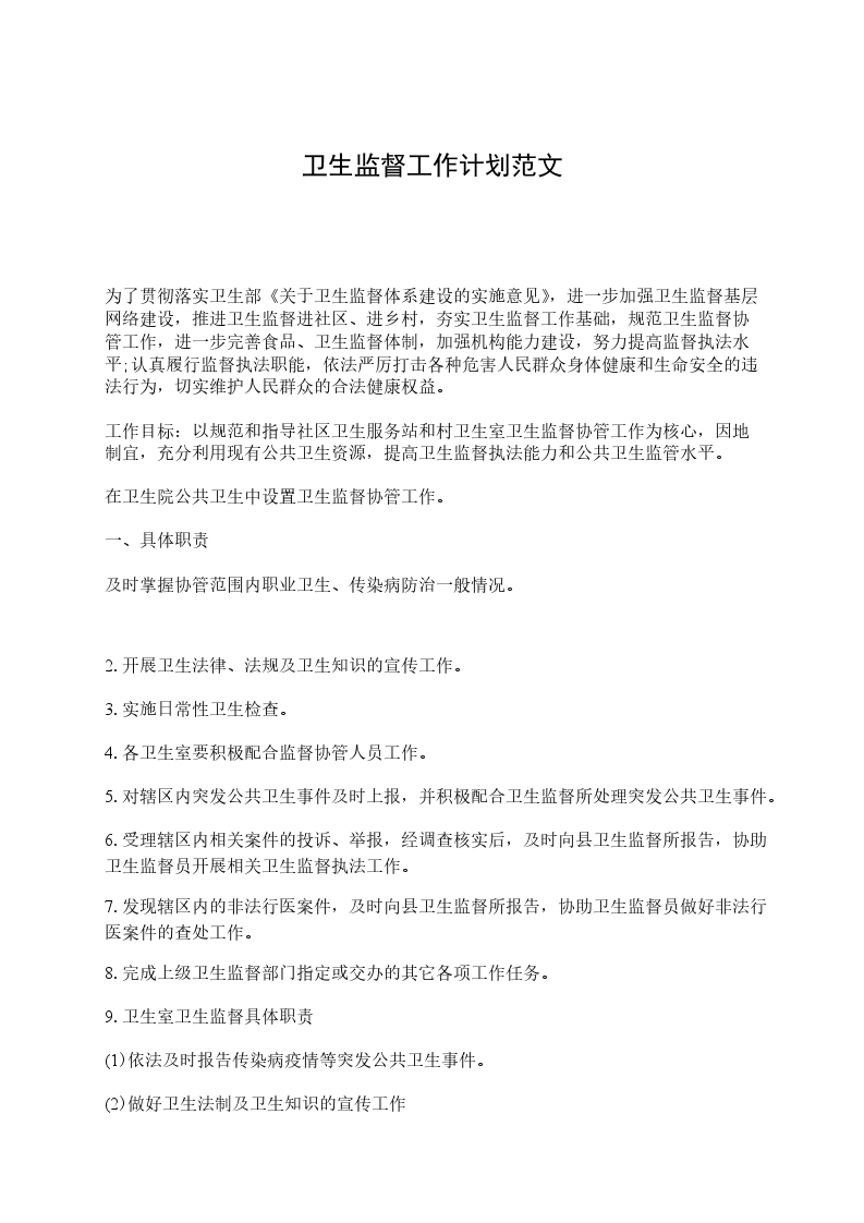 8.完成上级卫生监督部门指定或交办的其它各项工作任务。