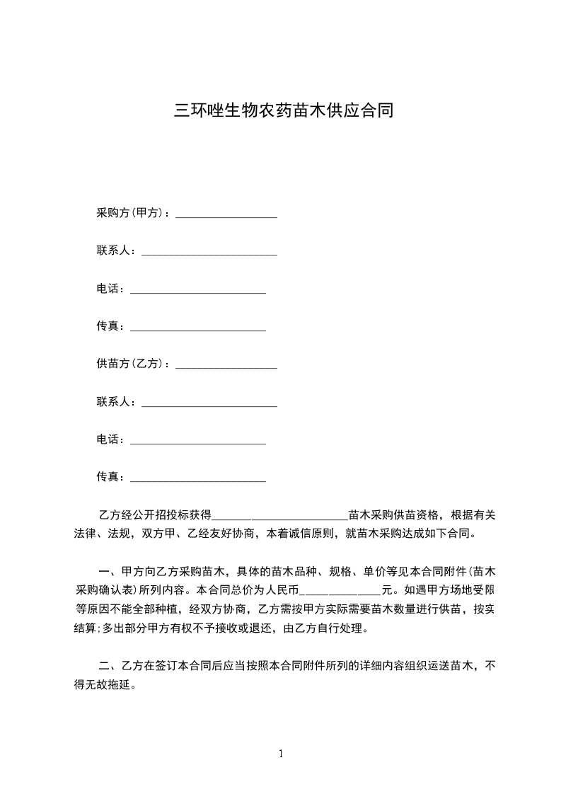 供苗方:__________________(以下简称乙方)
