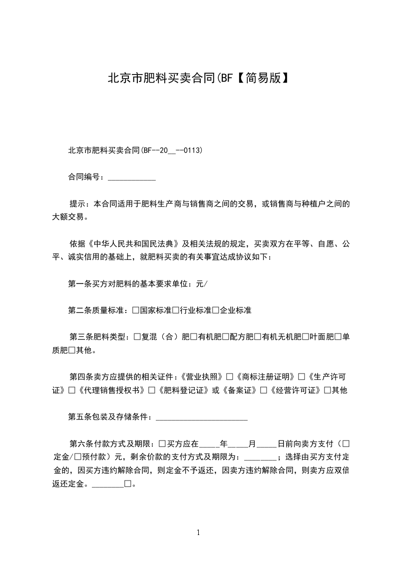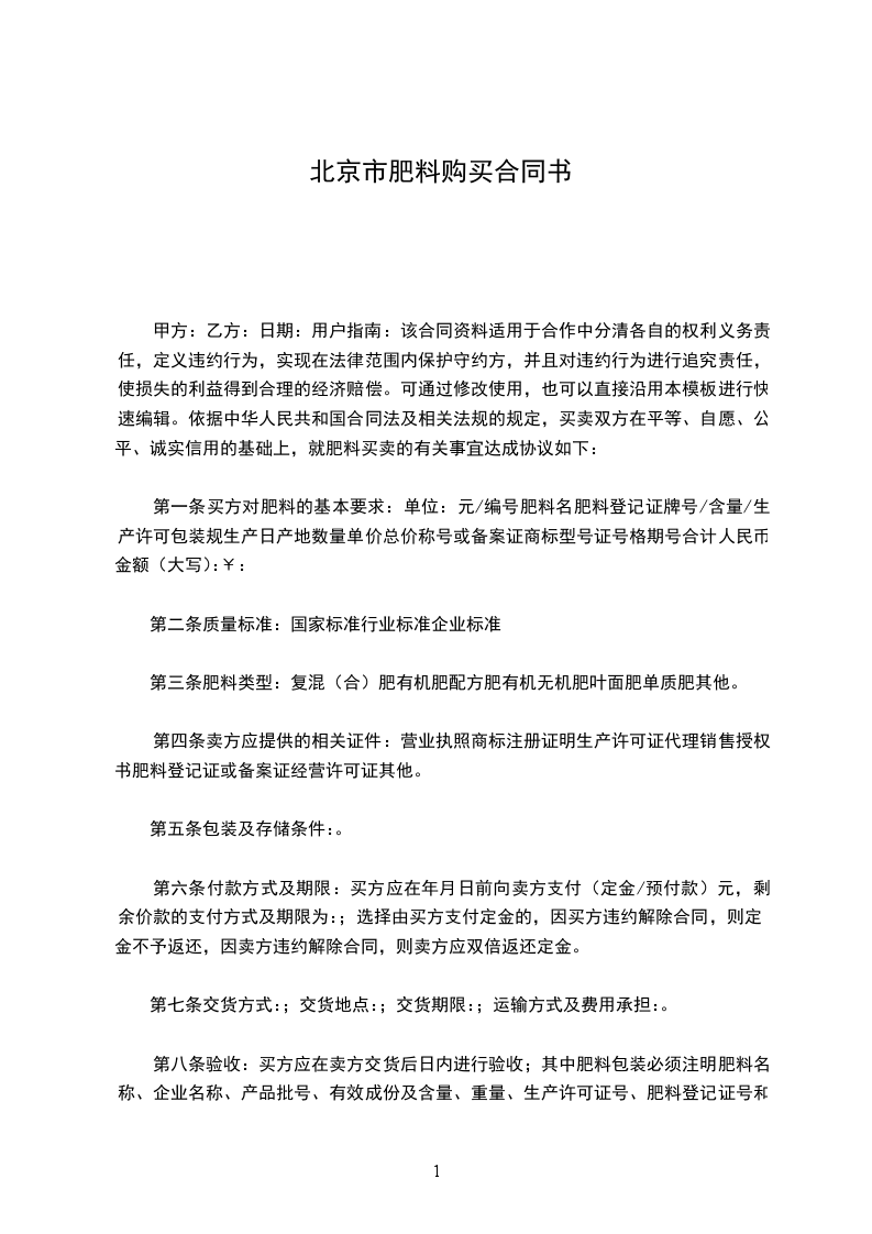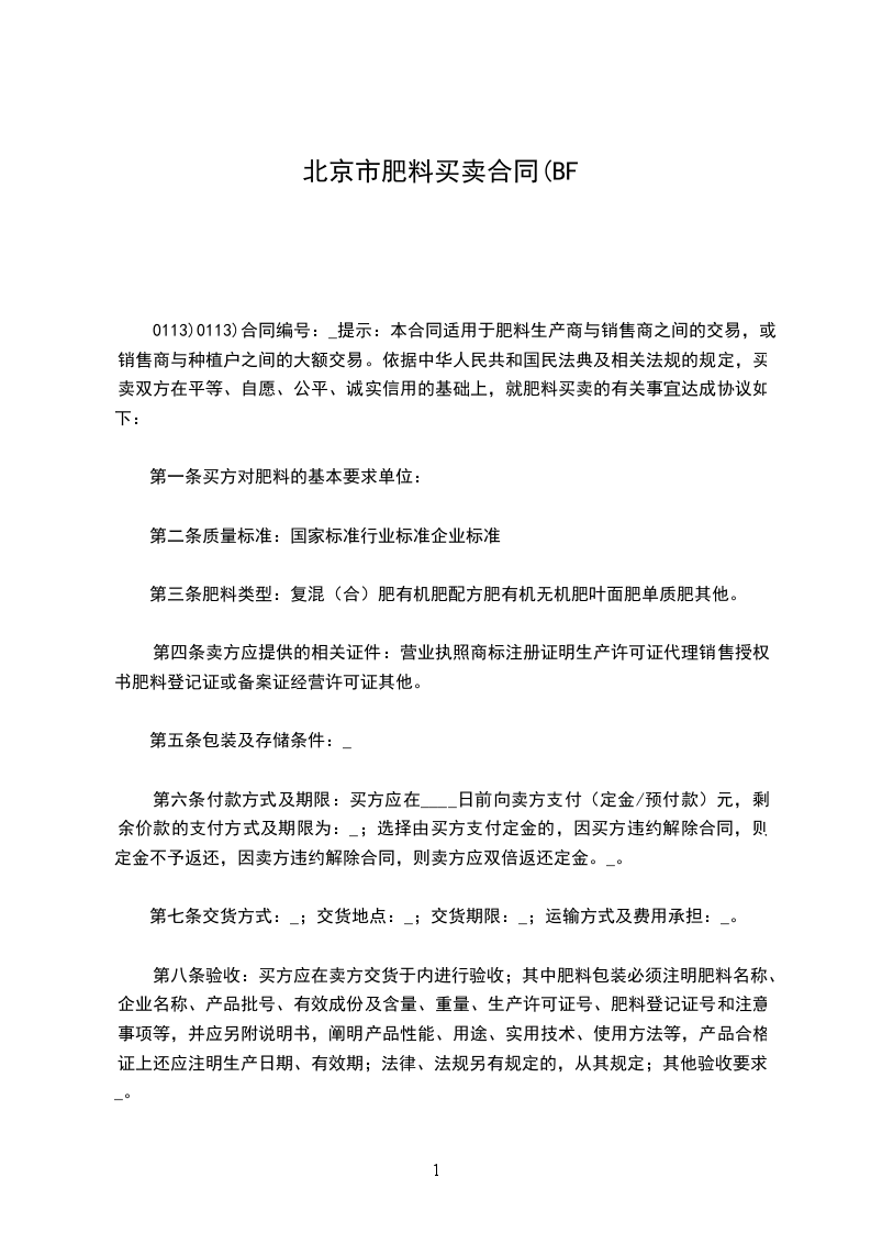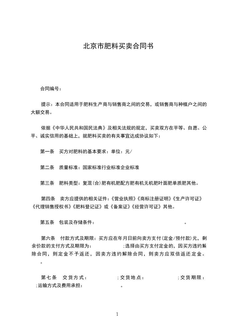 提示:本合同适用于肥料生产商与销售商之间的交易,或销售商与种植户之间的大额交易。
